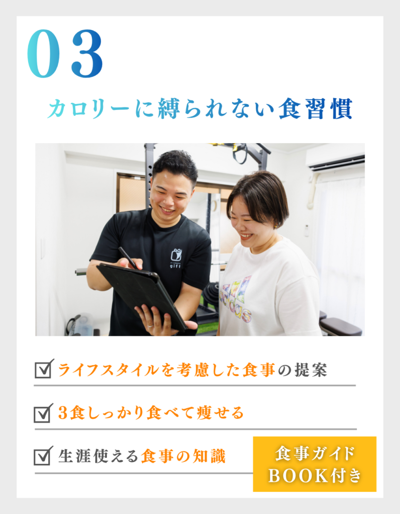 当ジムでは、糖質制限や極端なカロリー制限などの厳しい食事指導は行っていません。