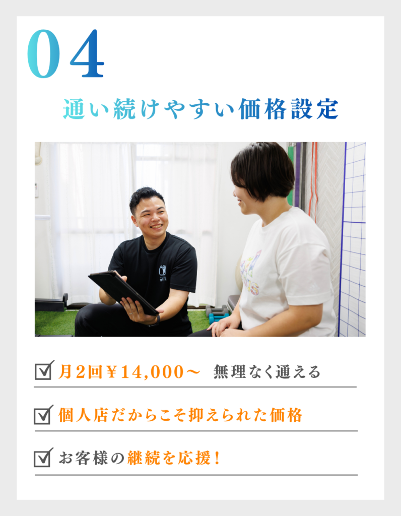 当ジムとしては、パーソナルトレーニングを習慣にして頂きたいので、月4回コースをおすすめしています。